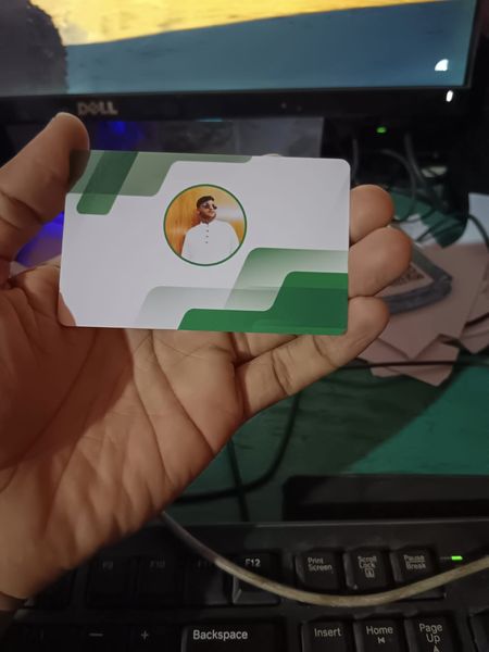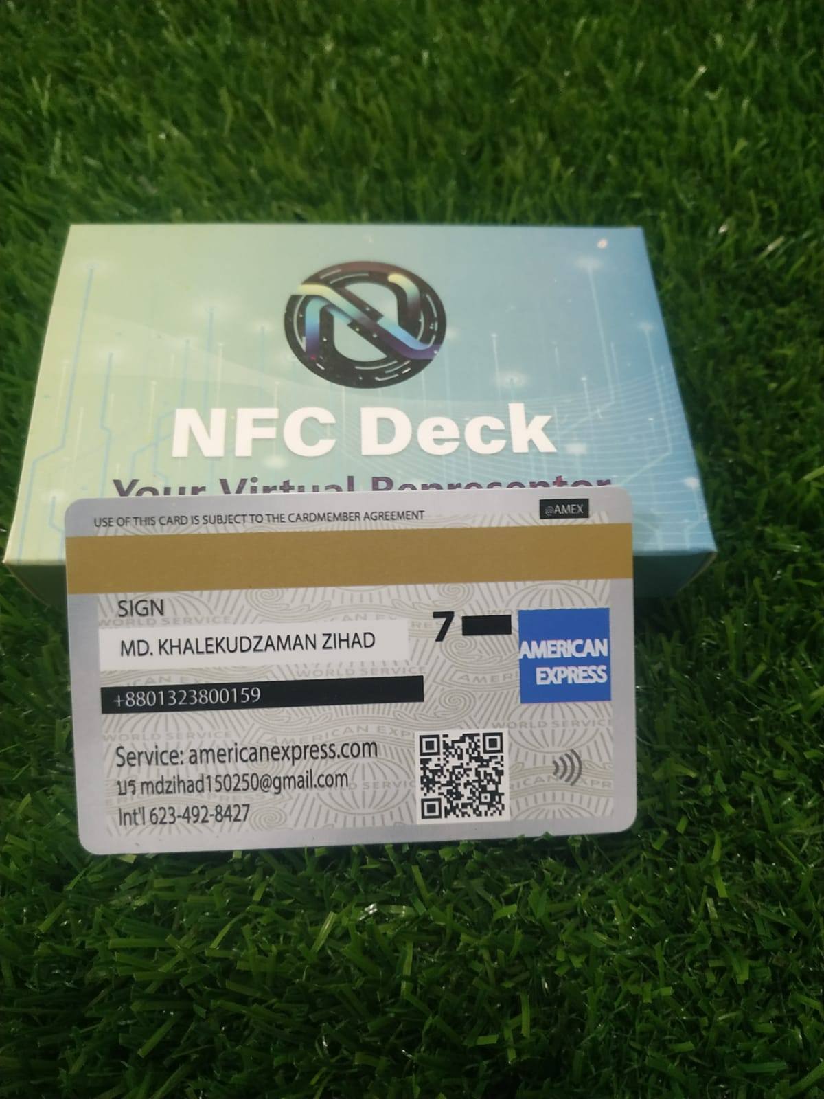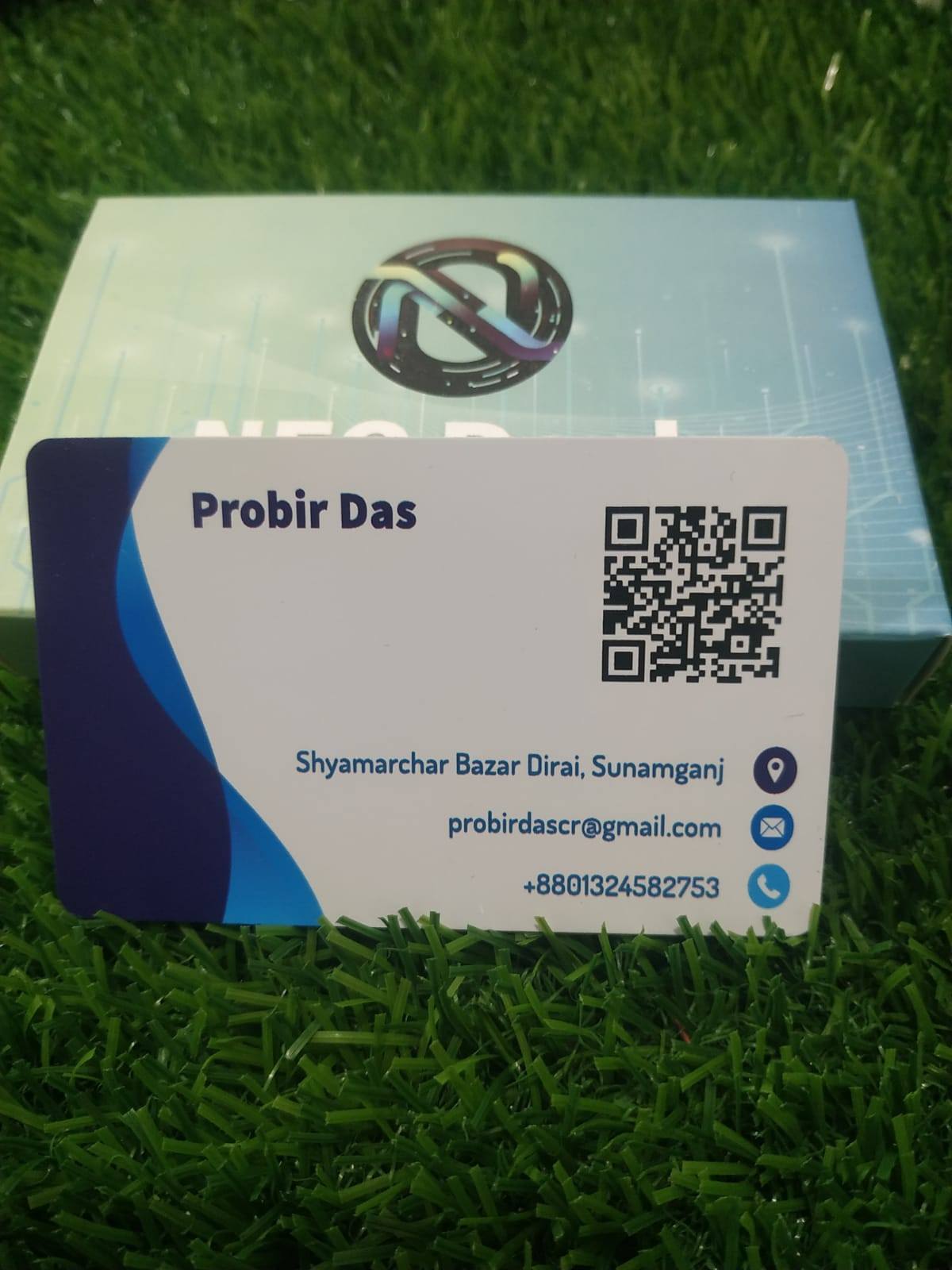 Printed NFC smart business card photos from Bangladesh with NFC tap and Dynamic QR, waterproof PVC, editable digital profiles—real prints and customer shots by NFC Deck.